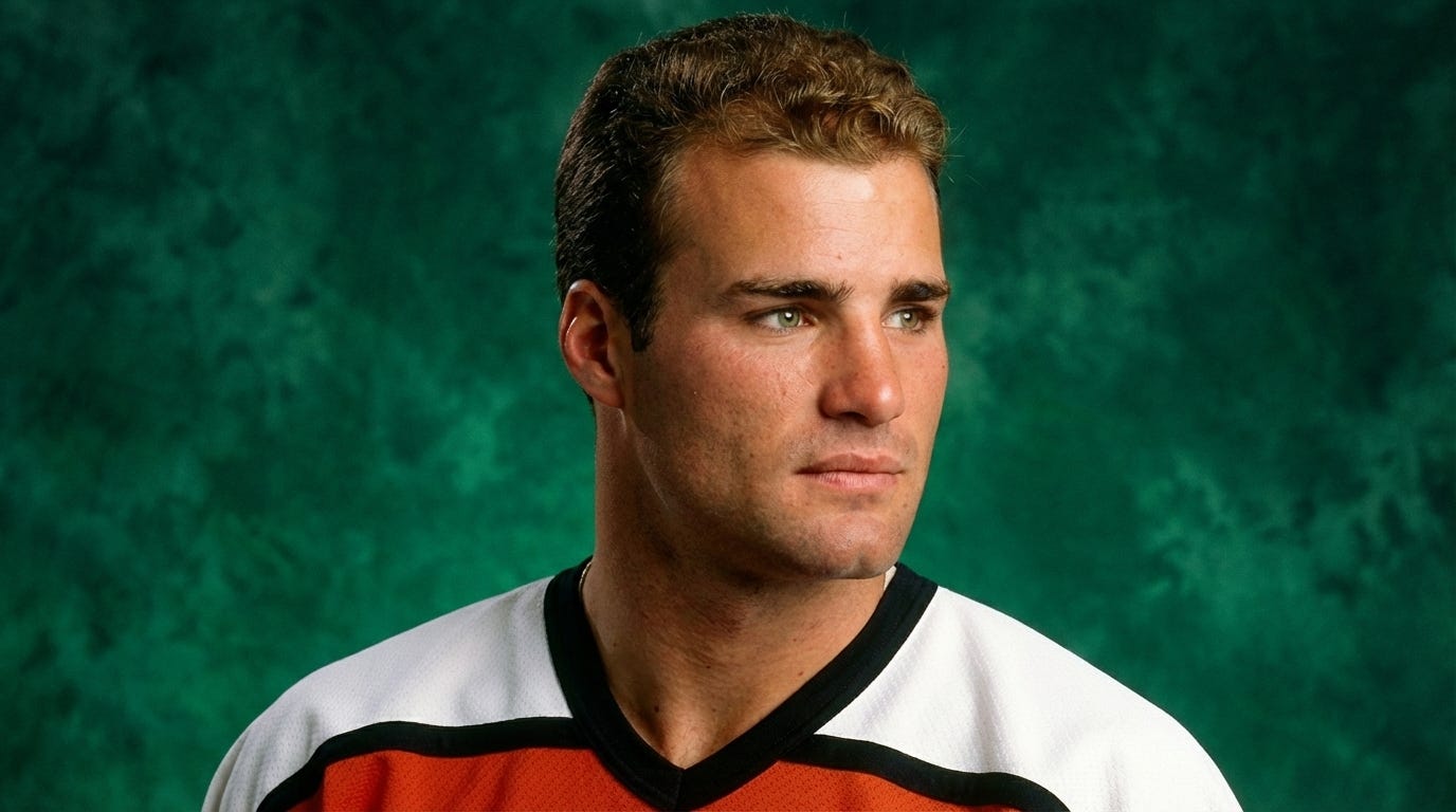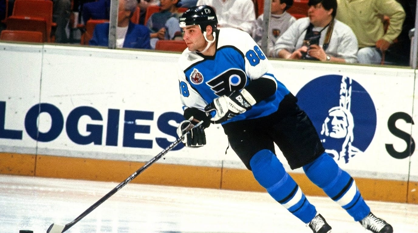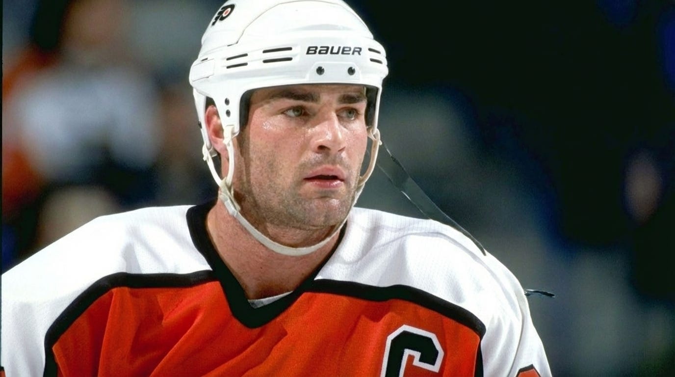 He was the centerpiece of the “Legion of Doom” line alongside John LeClair and Mikael Renberg — arguably one of the most physically imposing and productive lines in hockey history.