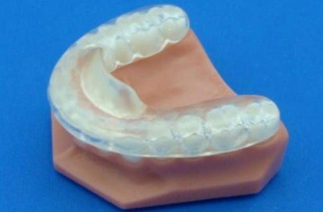This is why many dentists use things like ‘repositioning splints’ like the one pictured above. It tries to force your jaw to move forward.