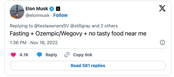 To fix his own body I find it funny that Elon just relies on the same playbook as everyone else.