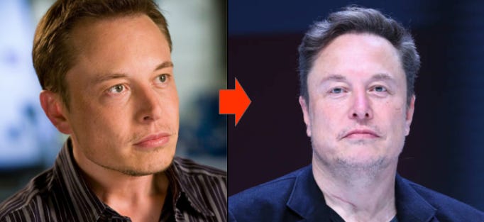 If you look at Elon's photos from 5-10 years ago versus now, the changes are dramatic.
