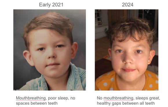 And he started sleeping very well. Plus his arches expanded a lot so that he now has healthy gaps between his teeth.