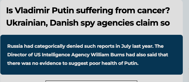 I’ve even heard people on podcasts and news shows talk about Putin having a ‘puffy’ face. And then there’s the claim by the Danish spy agency that he has cancer.