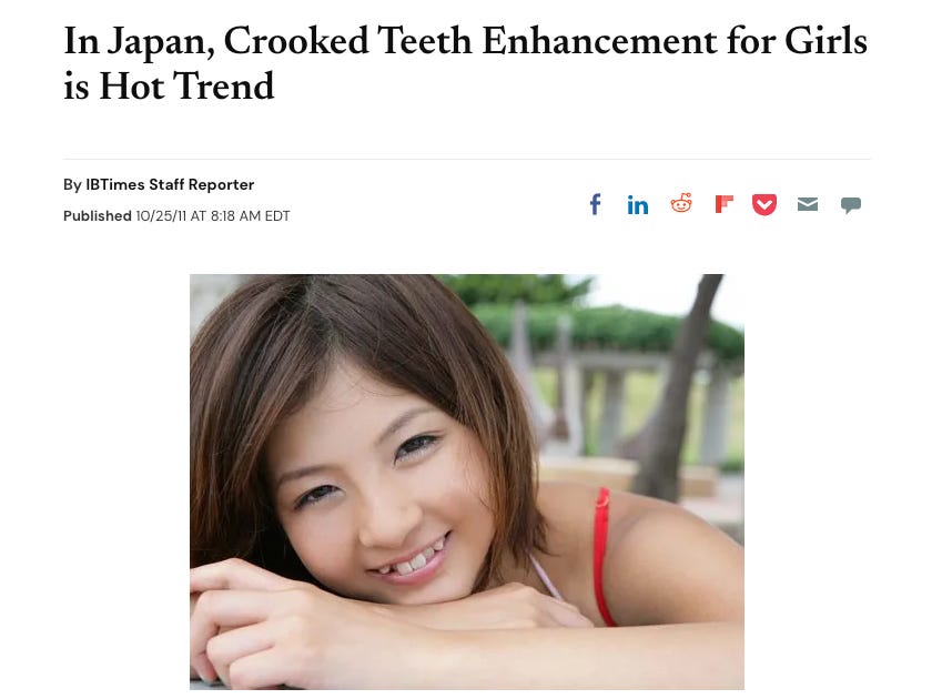 In fact there’s a trend in which girls actually enhance their crooked teeth more. Only in Japan! Hahaha