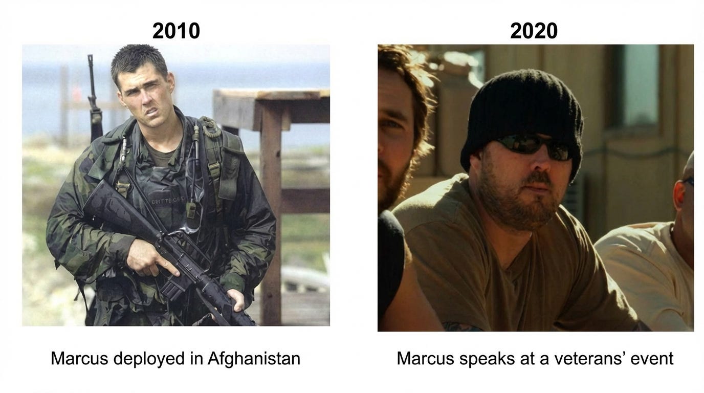 When he was a SEAL he had a nice profile and good skull definition. Seven years later he’d lost his profile and angles of his face, despite still leading a pretty active exercise regime.