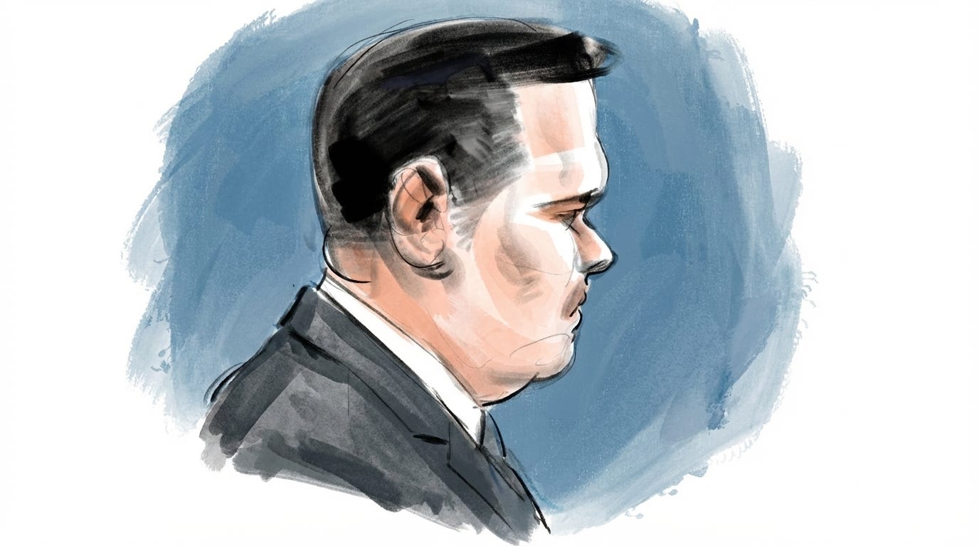 His neck was gone. Remember his long neck from the photo above? Now compare that to this courtroom drawing where his neck is non-existent.