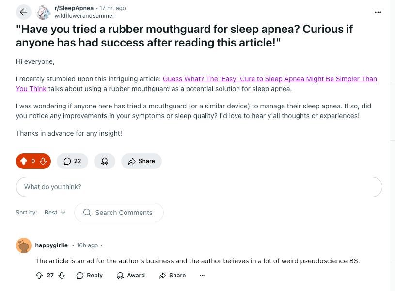 Someone pointed me to this subreddit where someone that had come across my sleep apnea article.