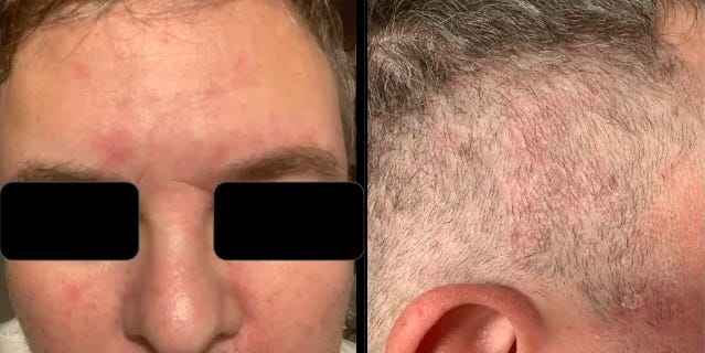 I rip through my scalp and parts of my forehead each day for like 1.5 years. Meaning the skin turns red and dead skin flakes off. This happens after I do my jaw stretches and not simply randomly.